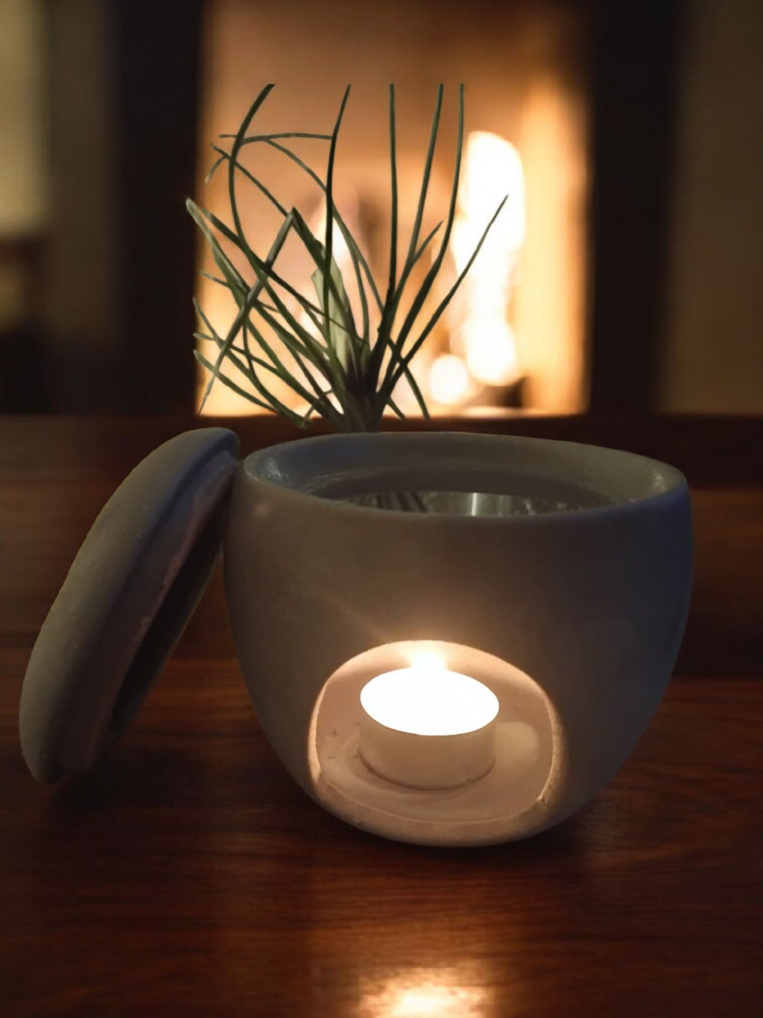 Son utilisation est extrêmement simple, soulevez le couvercle par la tige, mettez vos cires, fondants parfumés, senteurs, ou autres solutions parfumées. À l’aide de la chaleur d’une bougie chauffe-plat (bougie non fournie), la senteur échappe au bout de quelques instants.