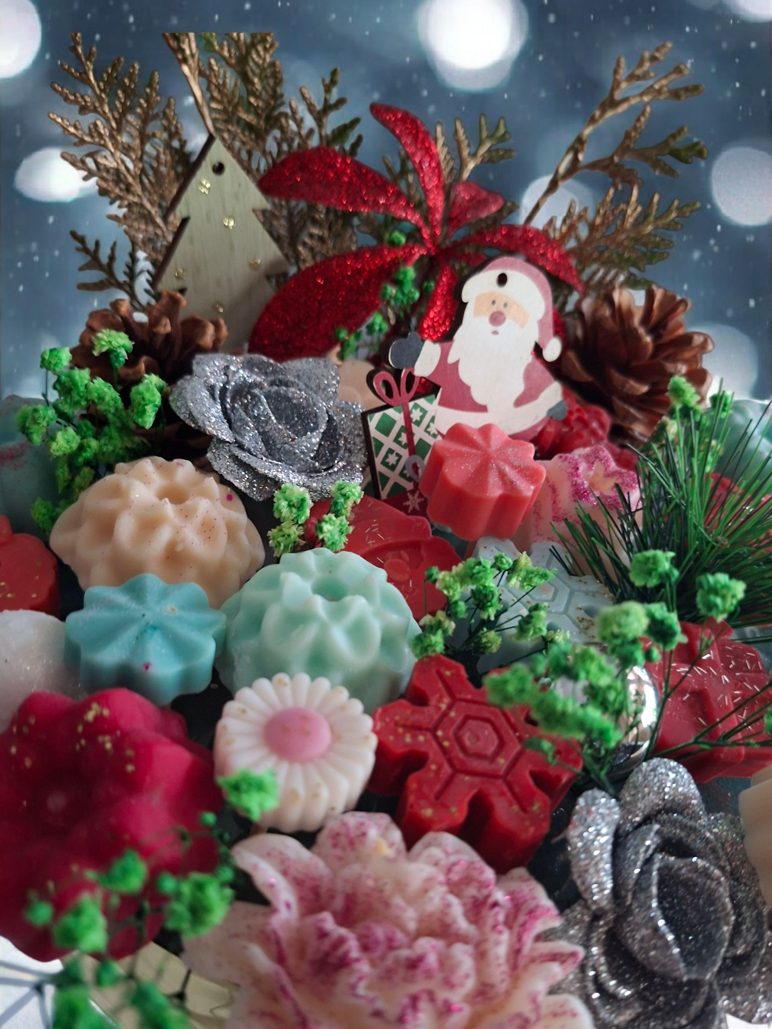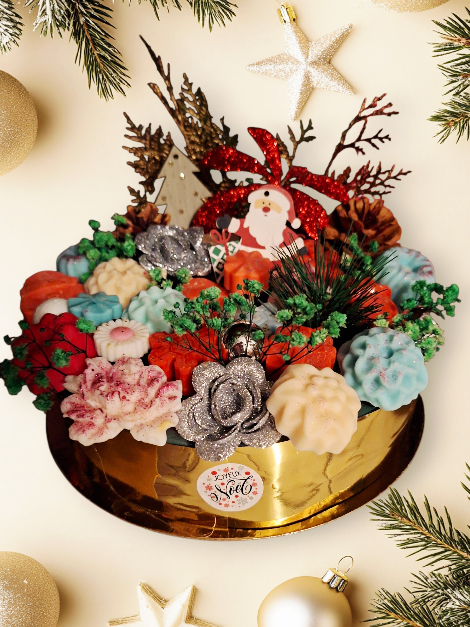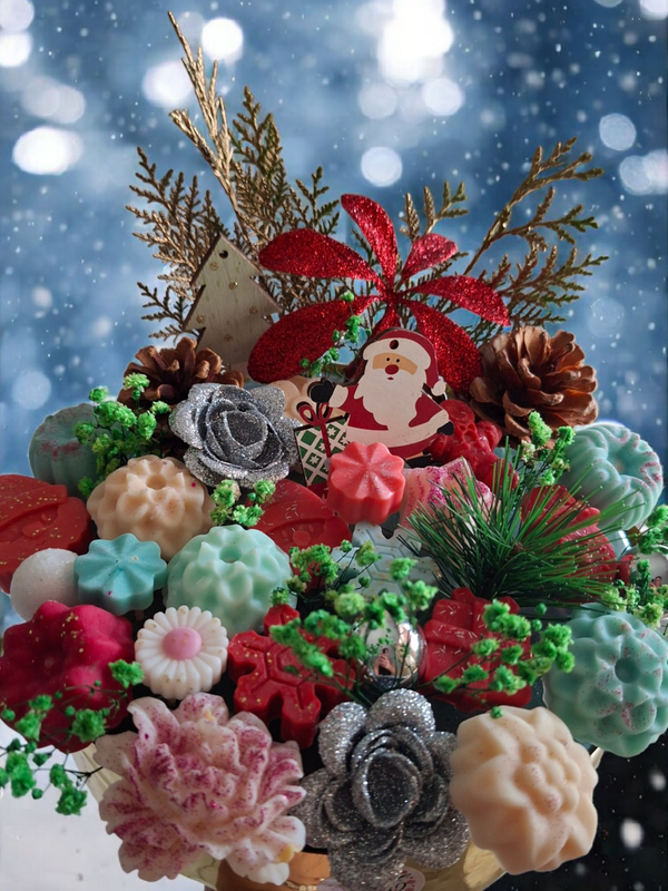 Ce bouquet n’est pas fait de fleurs… mais de fondants parfumés artisanaux !Des senteurs envoûtantes, des formes gourmandes et une touche dorée pour briller tout l’hiver